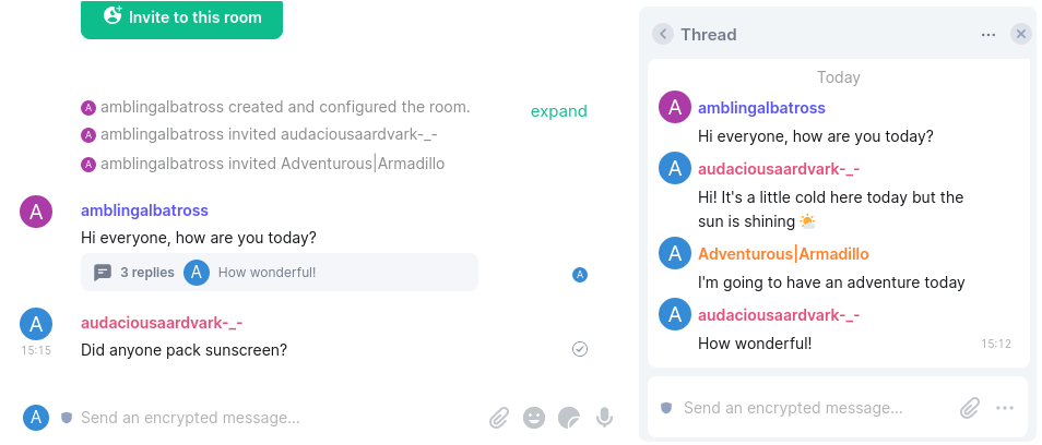 - For information about upcoming sessions and to join in, join #element-community-testing:matrix.org