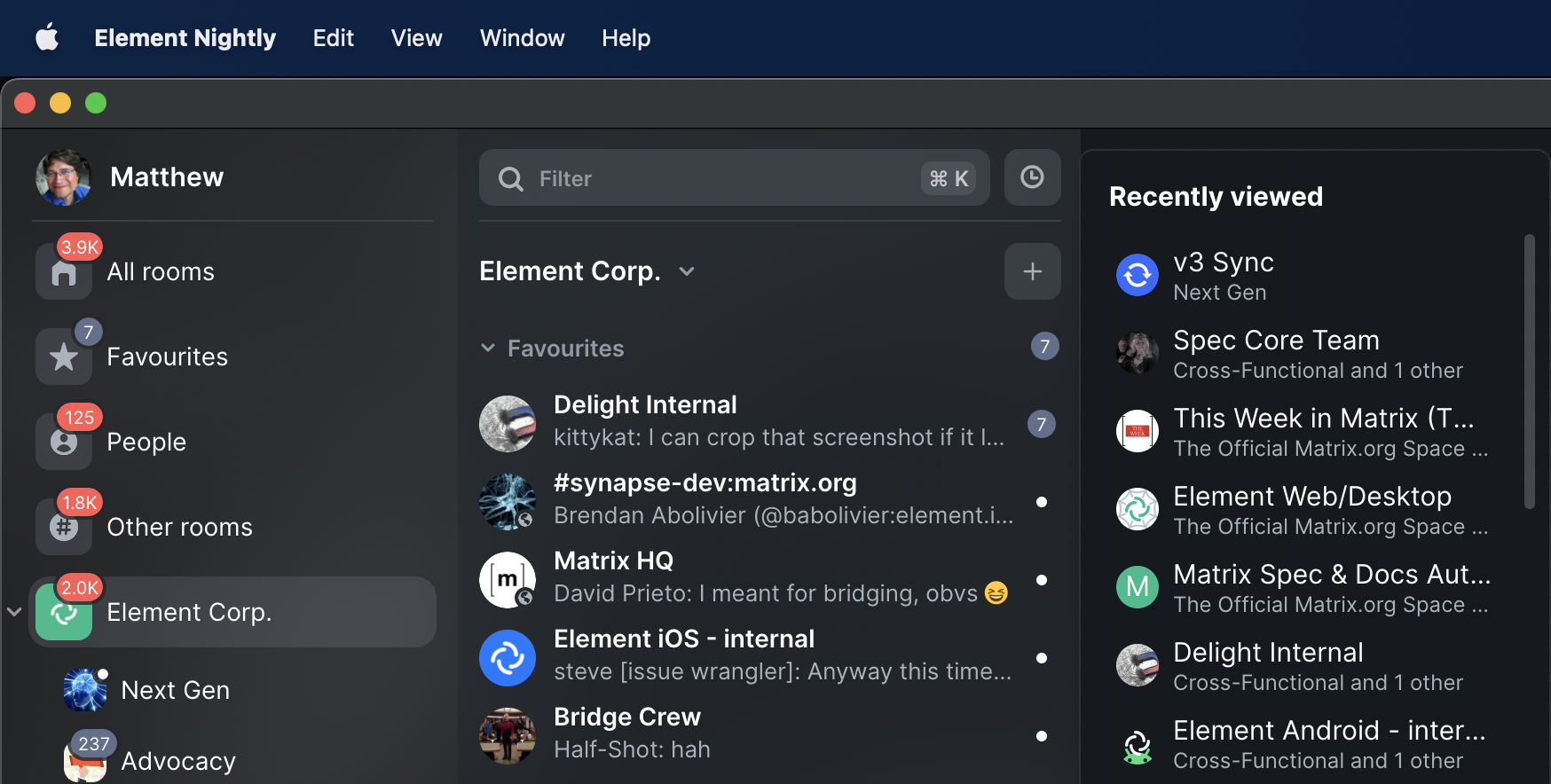 - On Web, work continues on notifications and integration with homeserver APIs to improve user experience.